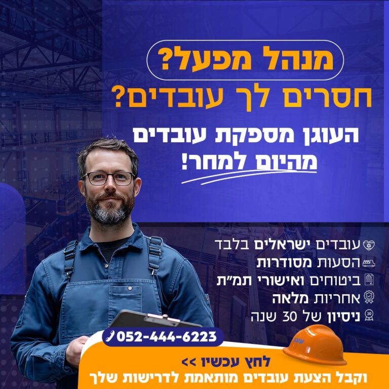 העוגן לעסק 24 בע"מ חברת השמה וכוח אדם גיוס עובדים בהרבה תחומים לכל רחבי הארץ מספקים מכלול רחב של עובדים בהרבה תחומים כמו עובדי ניקיון עובדי מפעלים עובדי בניין עובדי אריזה עובדי חקלאות ועוד תחומים ... הערכים שלנו הם עקרונות המנחים אותנו בכל מה שאנחנו עושים והם מבטיחים את שביעות רצון לקוחותינו בכל עת. בין לקוחותינו